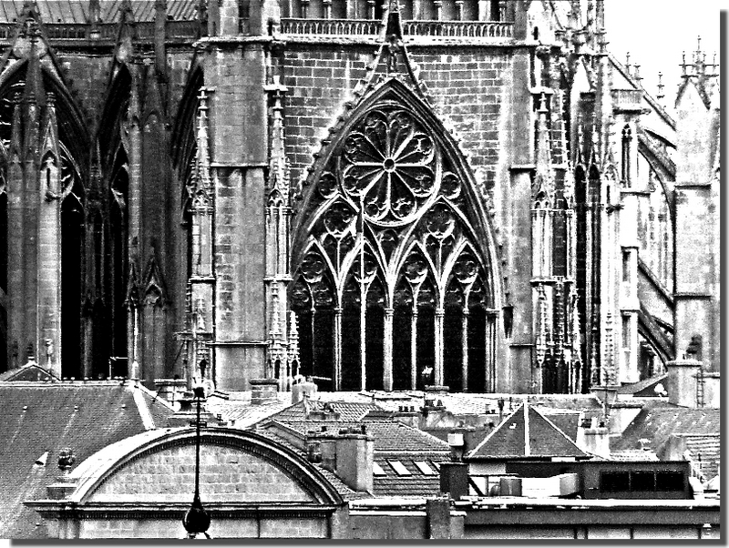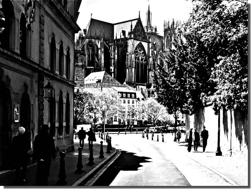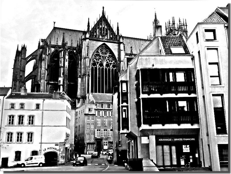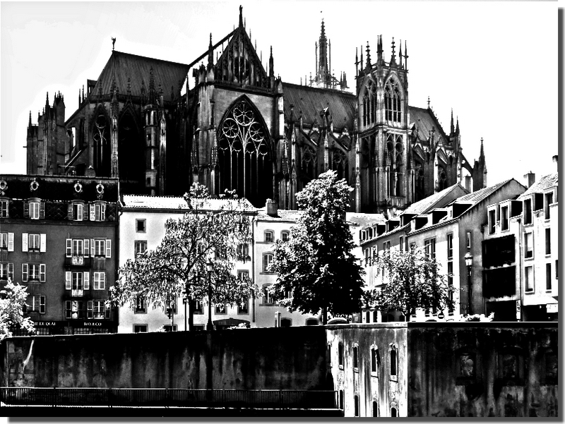 C'est pour cette raison que j'ai fait le choix d'en faire des photos en NB. Ce traitement ne change rien à la présence de la cathédrale dans la ville. Grâce à lui, j'espère que vous imaginerez mieux l'importance de ce grandiose édifice gothique pour et dans Metz.