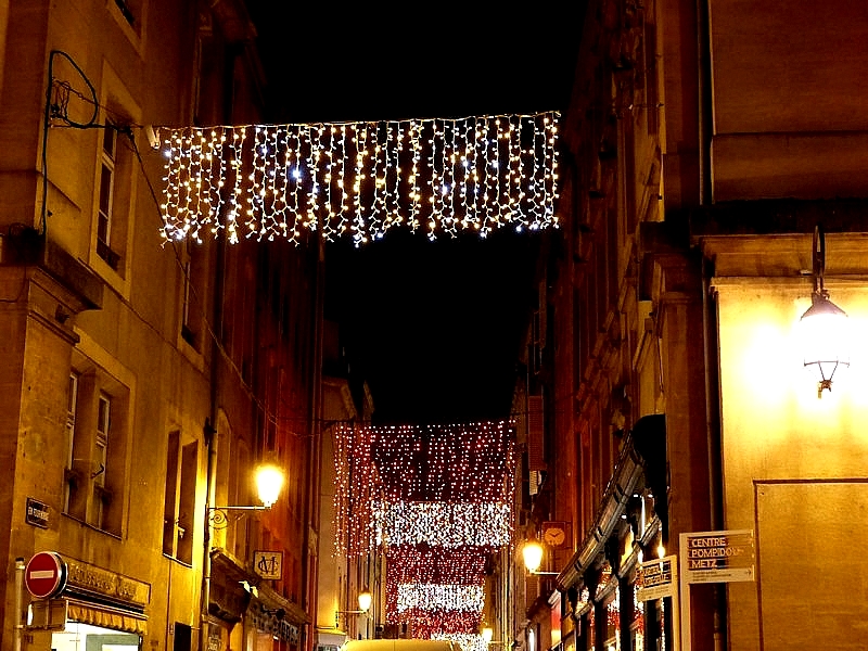 J'ai là aussi évité la foule en pointant Lumix vers les illuminations des rues Fabert et Paul Bezanson.