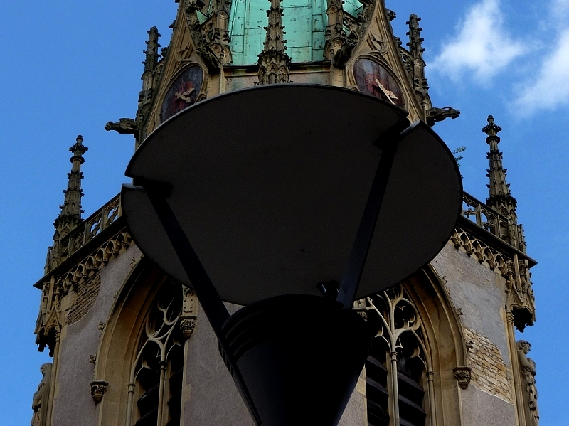Photo prise sous le clocher de l'église Saint-Maximin.