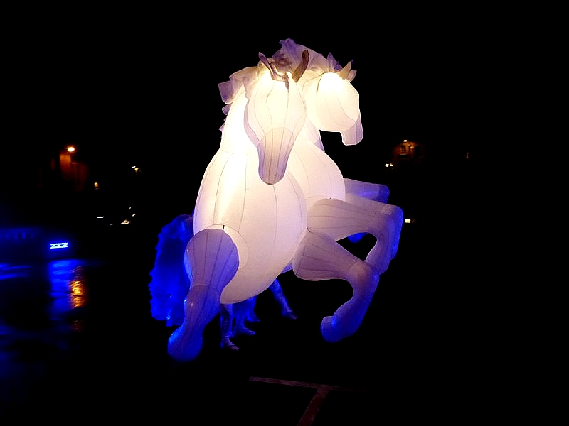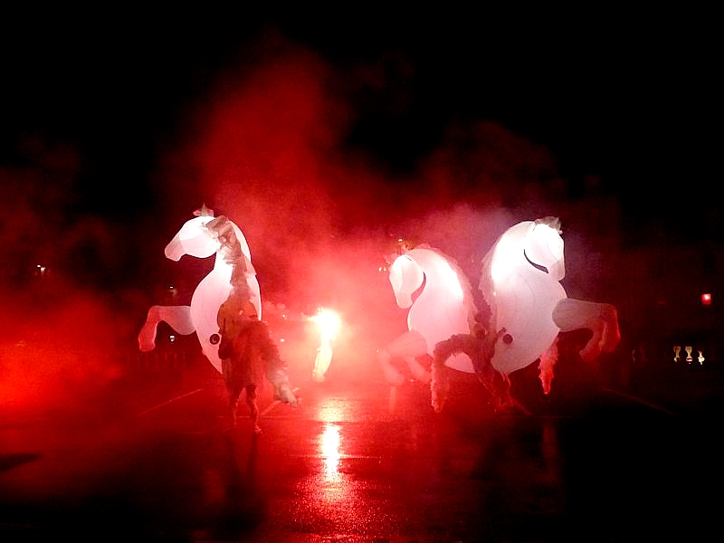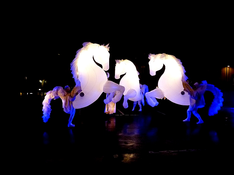 C'est FierS à cheval présenté par la Compagnie des Quidams, au pied de la cathédrale.