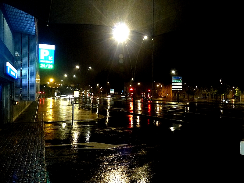 Alors que sur sa partie piétonne c'est le jaune, il devient or lorsqu'il pleut, qui prédomine.